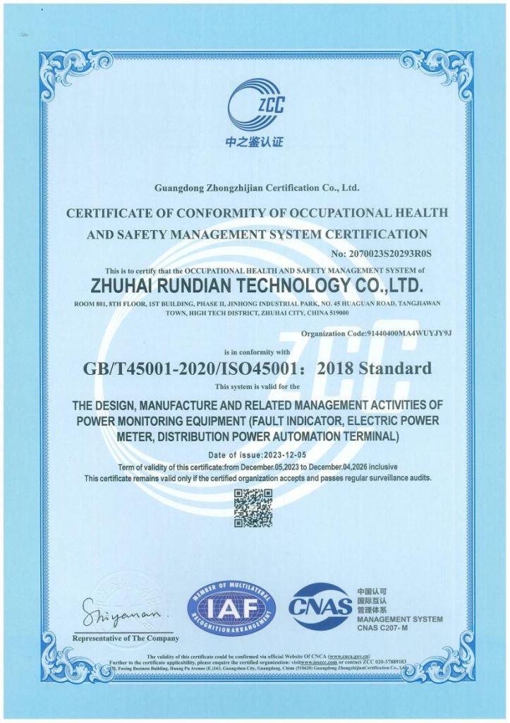 IS018001職業(yè)健康認(rèn)證證書(shū)